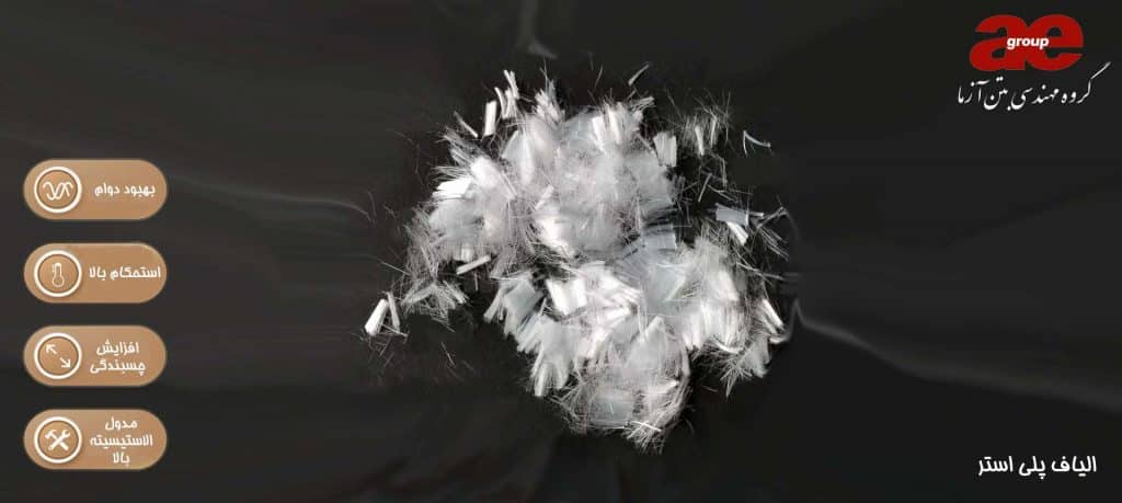 از آنجایی که بتن از نظر کشش ضعیف است، می توان با افزودن الیاف پلی استر سالید اصلاح شده در مقدار معین علاوه بر جلوگیری از ایجاد ترک، شاهد افزایش 25.56% مقاومت کششی بود. این الیاف با افزایش انسجام و پایداری در بتن و گچ کاری، شرایط دوام و خستگی مصالح مورد ترکیب را در برابر ضربه و تغیرات دمایی بهبود می بخشد.